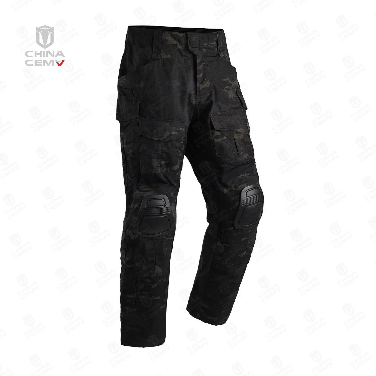 A classic design specifically for combat use, it uses wear-resistant and elastic fabrics. The three-dimensional cut allows for unrestricted movement and tear-resistance during high-intensity activities. It is made from water-repellent fabric. Protective gears can be inserted. It uses Hypalon to adjust the waist size and has large-capacity tactical pockets.